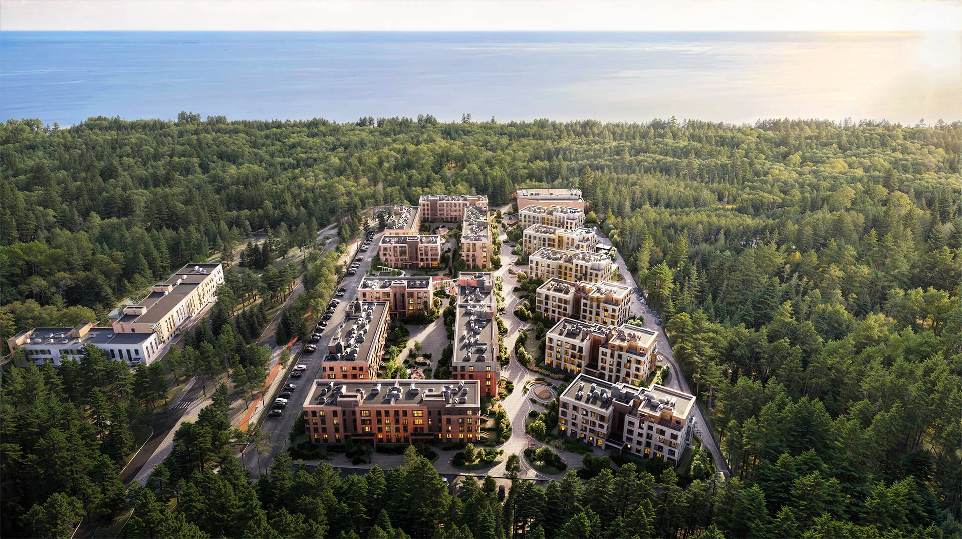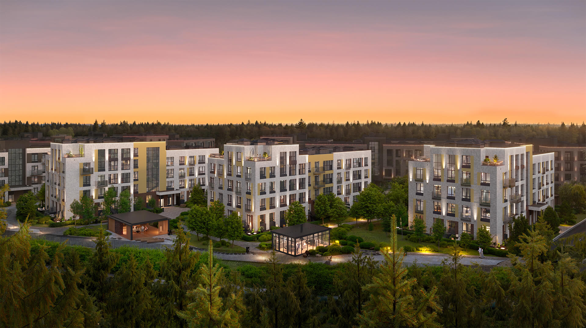Проект реализуется на территории площадью около 5,4 га, что позволяет встроить благоустроенный двор-парк с извилистыми аллеями, садом скульптур, арт-тропой и зонами барбекю, в гармонии с природным окружением. Здесь нельзя найти шумных коммерческих или общественных объектов: инфраструктура создана исключительно для резидентов. Коворкинг под открытым небом, финские павильоны с очагами, арт-кластеры и спортивные площадки обеспечивают разнообразие сценариев для отдыха и общения, не выезжая за пределы комплекса.